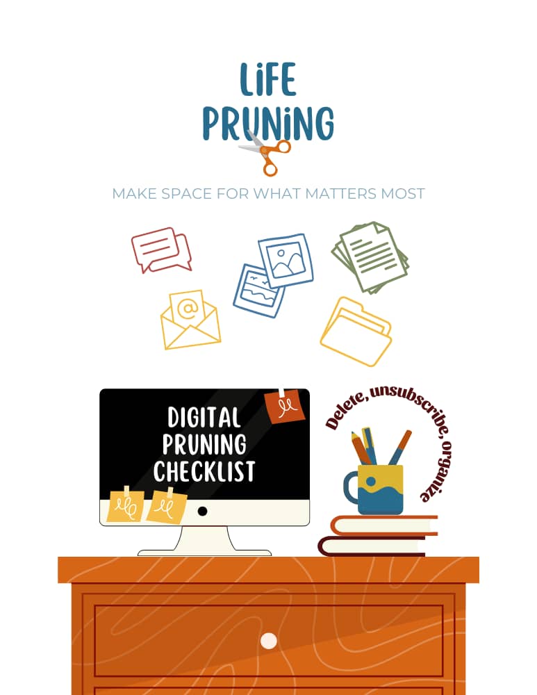 Clear out things you don't want or need, little by little. Choose the suggestions that call to you, and add your own ideas. It's amazing how good it feels to delete, unsubscribe, and organize. Have fun with it!